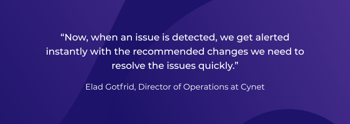The complexity of the environment also presents potential risks when trying to reduce costs; if optimization efforts are too aggressive, they can negatively impact system reliability and stability. To solve these challenges, Cynet turned to PerfectScale by DoiT, to optimize its Kubernetes environments with precision, clarity, and speed.
