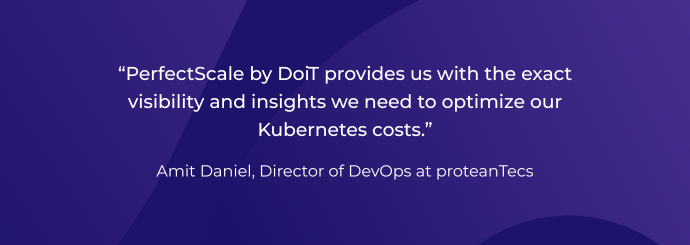 proteanTecs began by piloting PerfectScale by DoiT in one of its development environments to have the insights and automation necessary to optimize Kubernetes costs. It quickly uncovered clear opportunities to reduce costs without compromising performance.