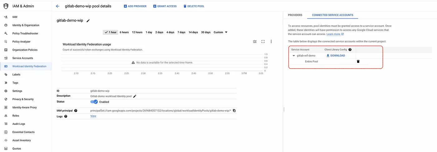 --member=serviceAccount:gitlab-wif-demo@${GCP_PROJECT_ID}.iam.gserviceaccount.com \